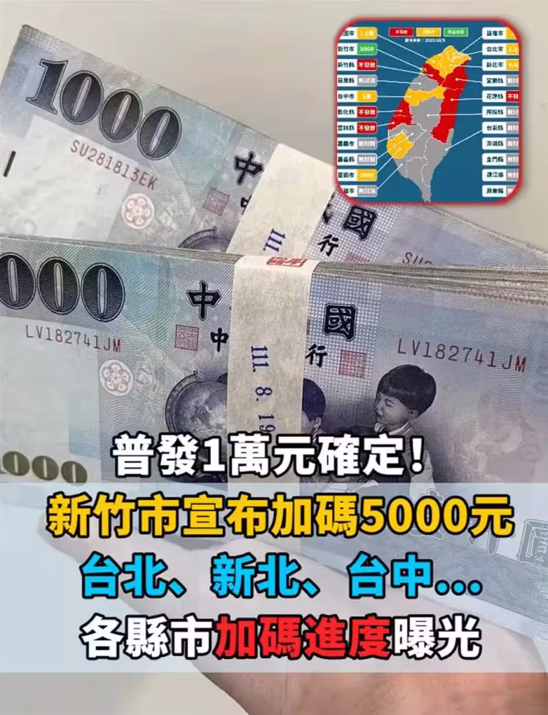 新竹市政府10月8日發布新聞稿表示,已編列明年預算啟動「因應美國關稅政策振興經濟消費金髮放實施計劃」,預計透過發放市民每人5000元消費金,