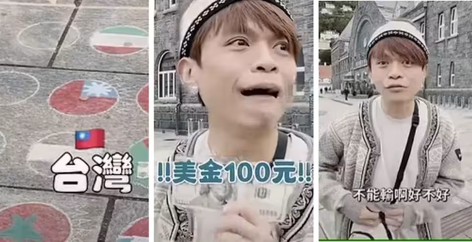 百萬YTR蔡阿嘎在挪威看到一名彩繪家在街頭繪製各國國旗,台灣排在第9名,加上旁邊很多中國遊客,他毫不猶豫立即掏出100美元力挺台灣。