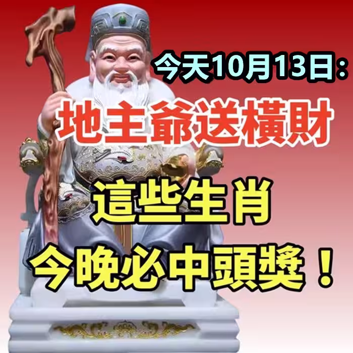 今天10月13日:地主爺送橫財,這些生肖今晚必中頭獎!!