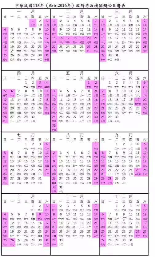2026放假120天!春節後請4天特休「爽放16天」9大連假出爐一次看