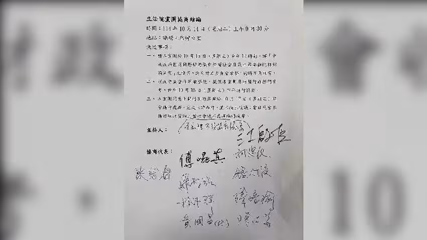 協商結論也指出,各黨團於10月15日(星期三)中午12時前,將「中央政府因應國際情勢強化經濟社會及民生國安韌性特別預算案」之提案,送至財政委員會彙整後,再提供各黨團及相關行政部門參考,以利10月15日下午進行協商。
