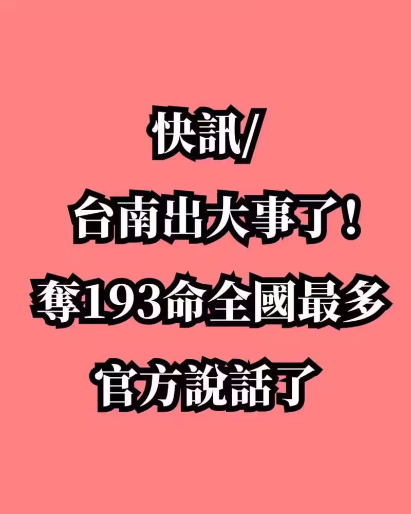 快訊/台南出大事了! 奪193命全國最多,官方說話了