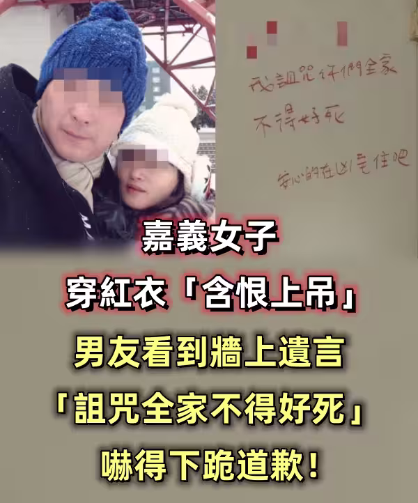 女子穿紅衣「含恨上.吊」男友看到牆上遺言「詛咒全家」嚇得下跪道歉