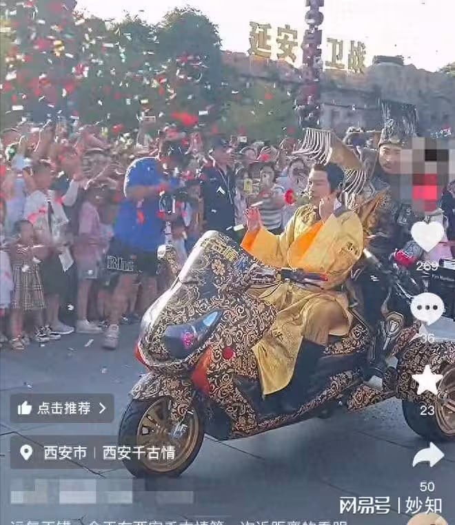 鄭國霖更絕,穿龍袍騎摩托載"秦始皇"炸街,點贊破百萬。