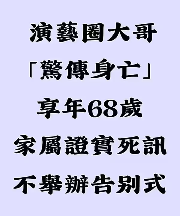 快訊/68歲演藝圈大哥「驚傳身亡」 家屬證實死訊:「不舉辦告別式」