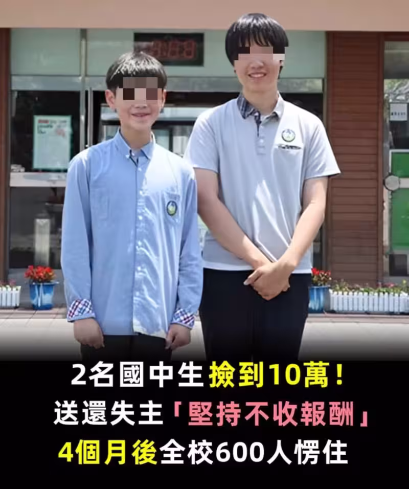 2名國中生撿到10萬!!送還失主「堅持不收報酬」4個月後全校600人愣住
