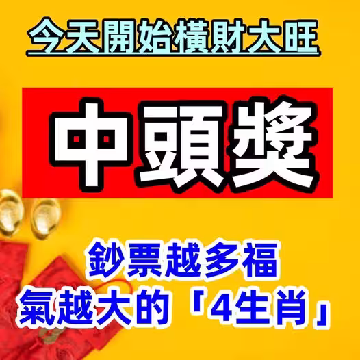 今天開始橫財大旺,有望中頭獎賺大錢,4生肖的財運特別旺盛!