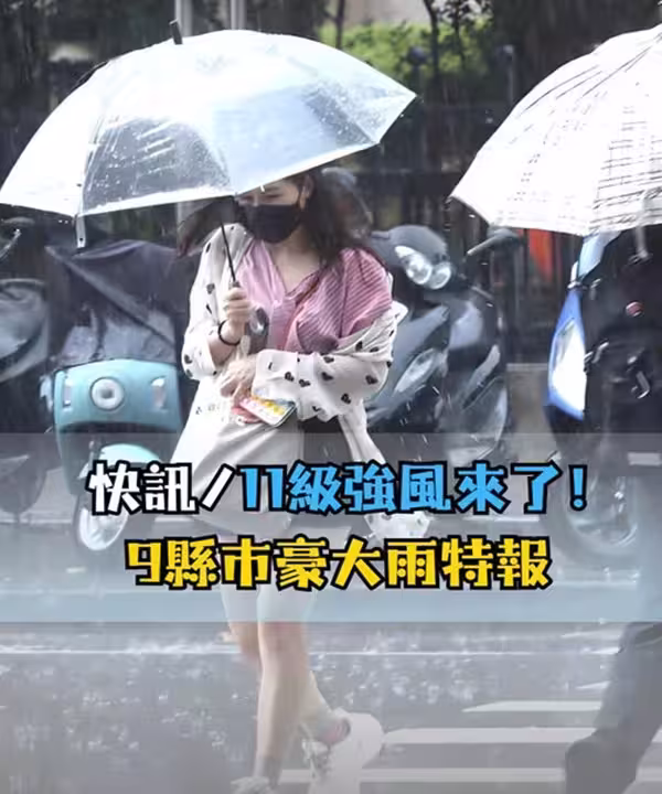 防11級以上強陣風,基北北桃9縣市大雨特報!中央氣象署提醒,今天、周二受風神颱風外圍環流及東北季風雙重影響,有機會出現共伴效應,各地降雨機率增加,迎風面易有大雨或豪雨,基隆北海岸、宜蘭、大台北山區有局部豪雨等級以上降雨發生的機率。