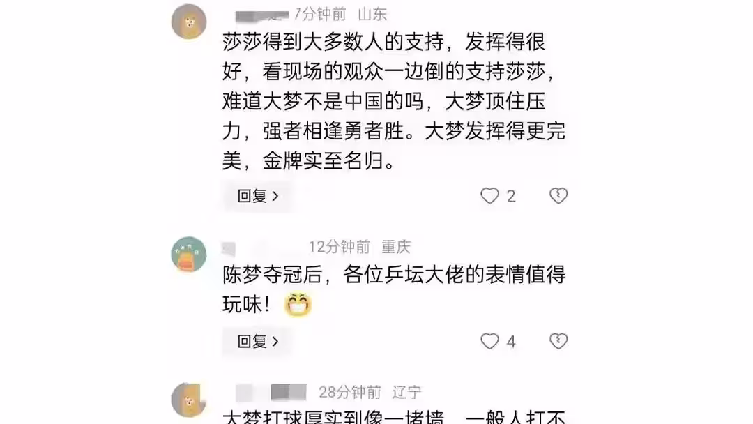 更讓人寒心的是,這股風波並沒有隨著時間平息。兩年後的巴黎奧運周期,陳夢每一次出場,每一次勝利,甚至每一次呼吸,似乎都是錯的。就連功勳教練劉國梁一句「你現在擔當領軍人物,還早了點」的客觀評價,也被解讀為對陳夢的公開否定,成了壓在她身上的又一座大山。她不明白,為什麼自己拼盡全力換來的金牌,卻成了「原罪」。