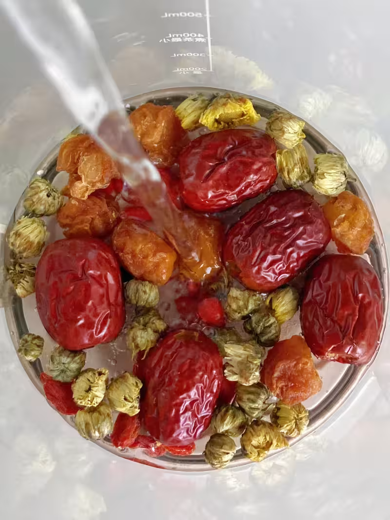 紅棗,枸杞,菊花:這三味藥都是入肝的。枸杞可以滋養gan血,紅棗可以幫助肝臟解du,菊花則可以清肝熱。