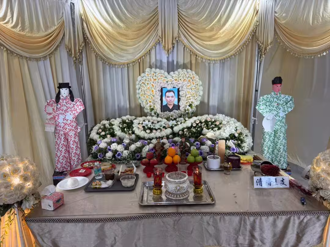 死者靈柩安置在柔佛振林山路中華山莊冷氣殯儀館C1廳,於星期日上午舉殯。