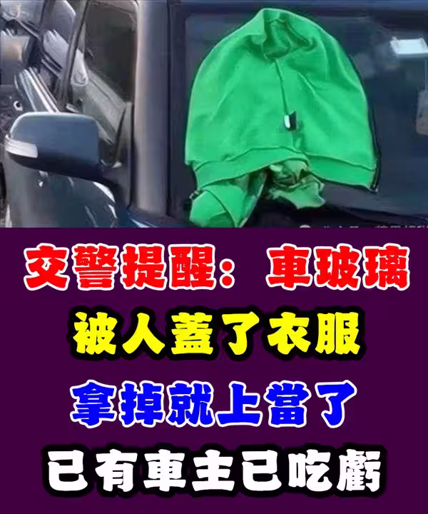 交警提醒:車玻璃如被人蓋了衣服,拿掉就上當了,已有車主吃虧