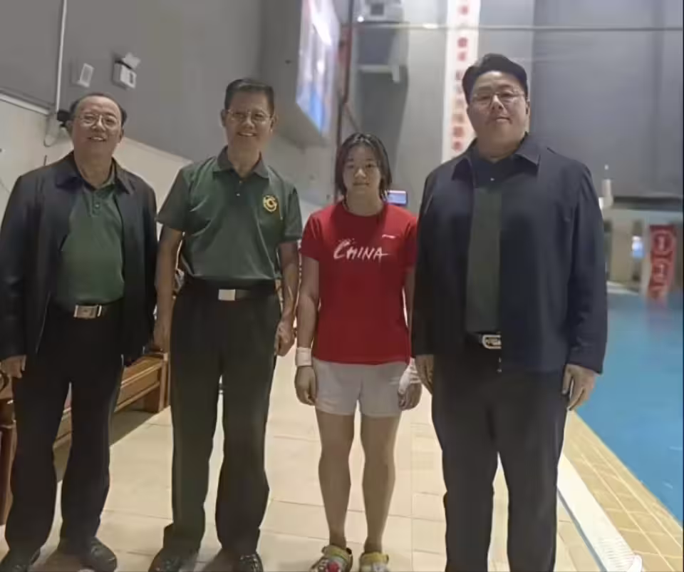 目前,全紅嬋正在廣州二沙訓練中心進行最後的備戰。有領導來到訓練中心視察,並與全紅嬋進行了合影。只見全妹站在C位,穿著洞洞鞋,非常接地氣。