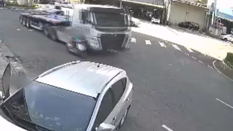 驚險!78歲女騎士為閃路邊違停車輛 遭大貨車擦撞險卷車底