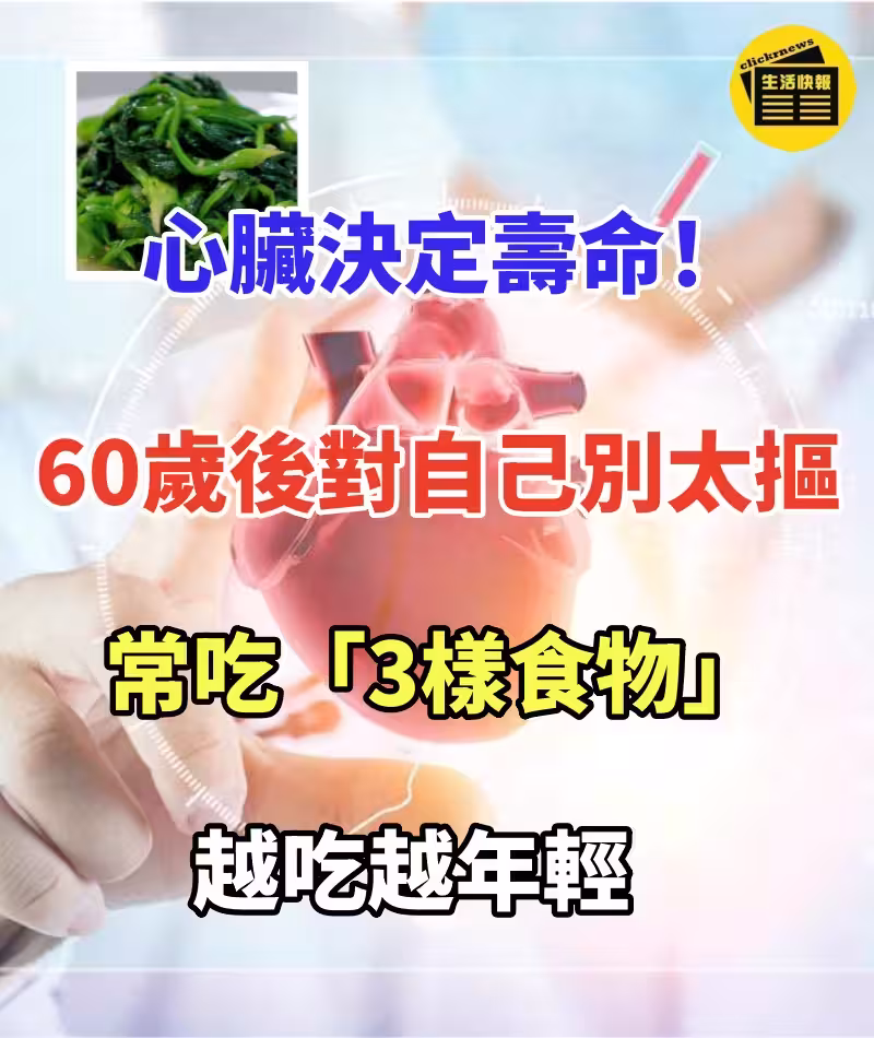 心臟決定壽命!!60歲以後對自己別太摳,常吃「3樣食物」越吃越年輕!!