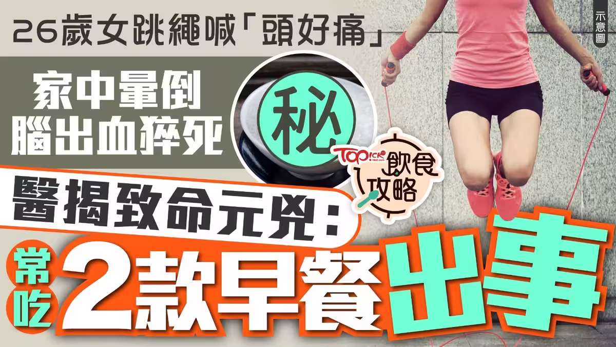 腦出血|26歲女跳繩突腦出血身亡 醫生揭致命原因:常吃2種食物出事