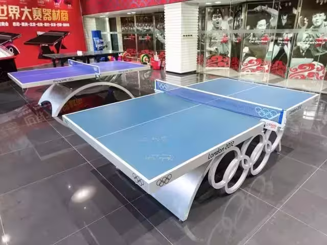 在紅雙喜大樓展示的北京和倫敦奧運會男團決賽簽名球檯