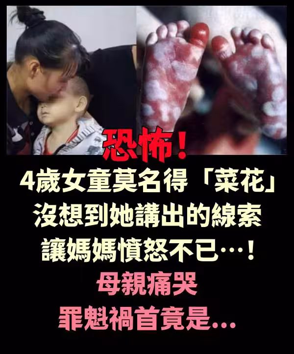 恐怖 4歲女童莫名得「菜花」,沒想到她講出的線索讓媽媽憤怒不已…!母親痛哭,罪魁禍首竟是……