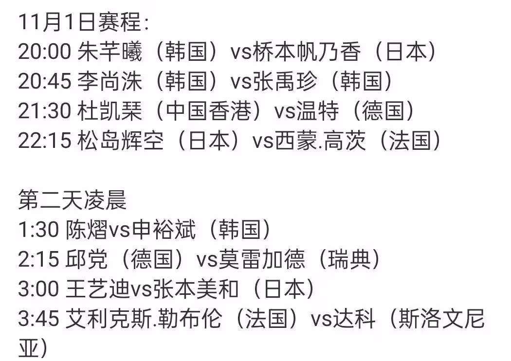__WTT冠軍賽:11月1日賽程公布!將誕生全部4強