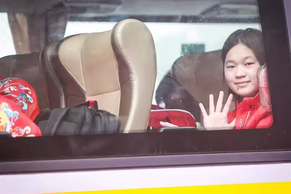 1日下午賽前最後一次訓練結束後,身著隊服的全紅嬋與隊友一起乘坐運動員班車離開,留意到等候在外的媒體記者,她隨即露出標誌性的靦腆微笑並揮手致意,輕鬆的狀態讓外界對其復出表現更添信心。