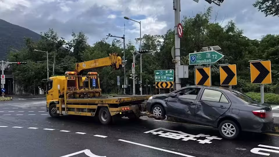 蘇澳台9線砂石車右轉不慎 轎車挨撞「慘被推著走」