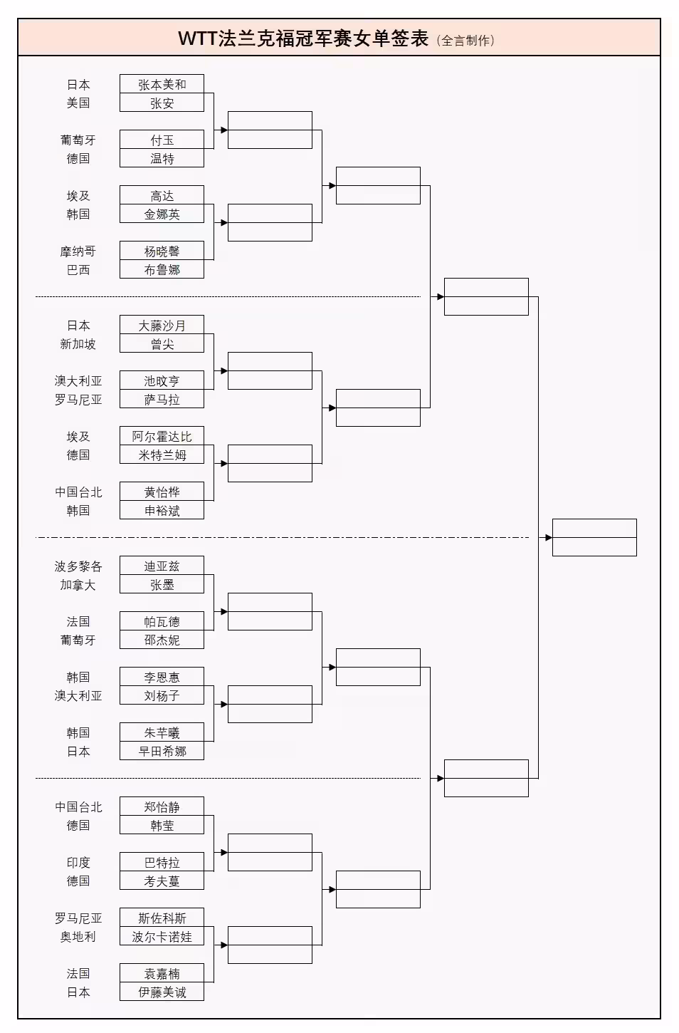 __WTT德國冠軍賽:女單簽位公布!日本包攬前4號種子,首輪迎戰強敵