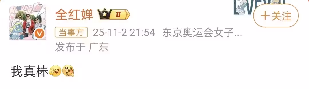 全紅嬋復出首秀奪冠,超自信發文:我真棒!評論區人才輩出全是贊_**