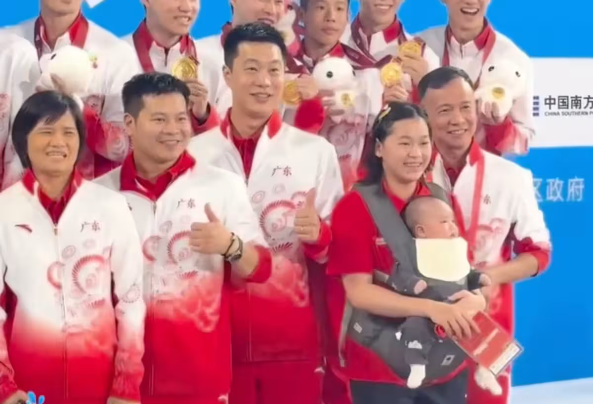 18歲全紅嬋變身「紅姨」:場邊幫謝思埸帶娃 混進廣東男團冠軍照