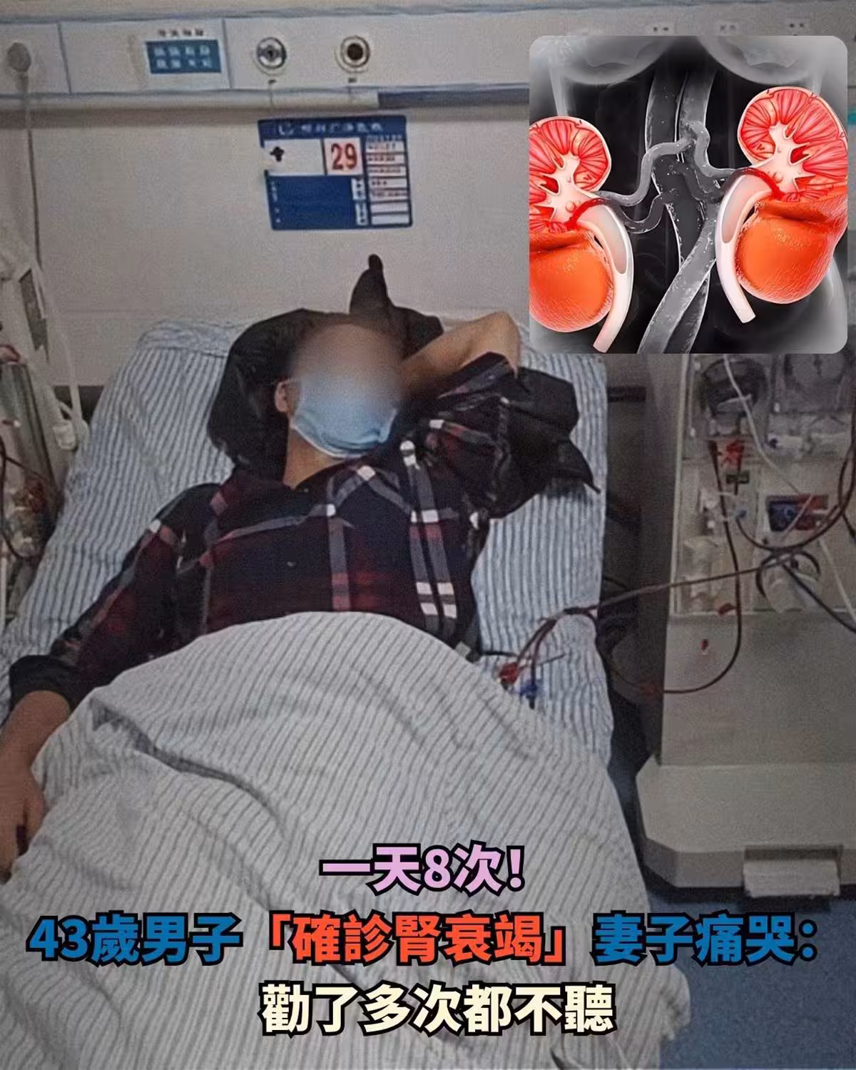 一天要8次!!! 43歲男子「確診腎衰竭」 妻子痛哭: 勸了多次從來都不聽