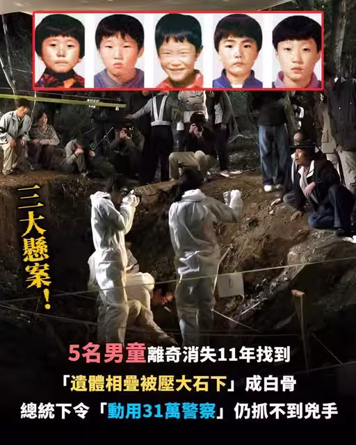 三大懸案! 5男童離奇消失11年「遺體相疊被壓大石下」成白骨,總統下令「動用31萬警察」仍抓不到兇手