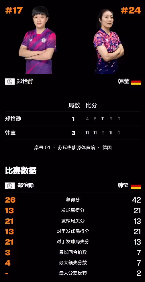 __WTT冠軍賽:女單16強已出其6!世界亞軍一輪游,苦戰不敵削球手