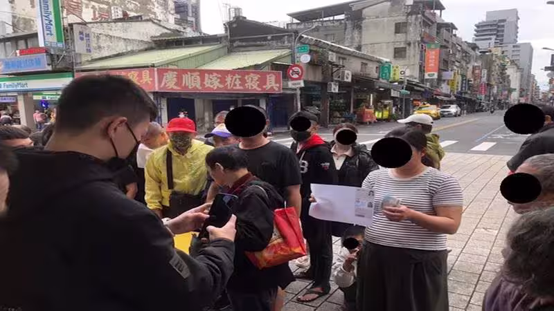 在台北市龍山寺前,一群年輕男子架設簡易攤位,僅用兩張小桌子和幾張板凳,便開始進行可疑的個資收購活動。現場有人目睹一名男子手持身份證和健保卡等雙證件,從一位馬尾女子手中領取 1000 元現金的畫面,引起周圍民眾的注意。
