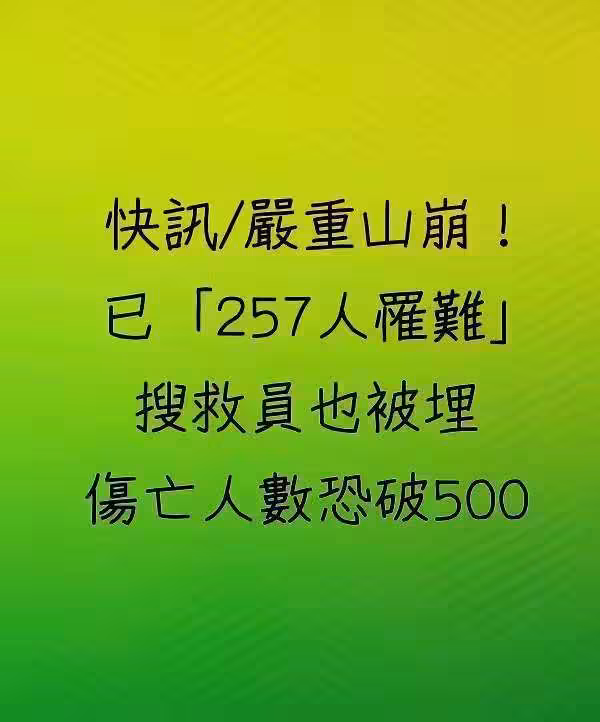 嚴重山崩!已「257人罹難」 搜救員也被埋 傷亡人數恐破500