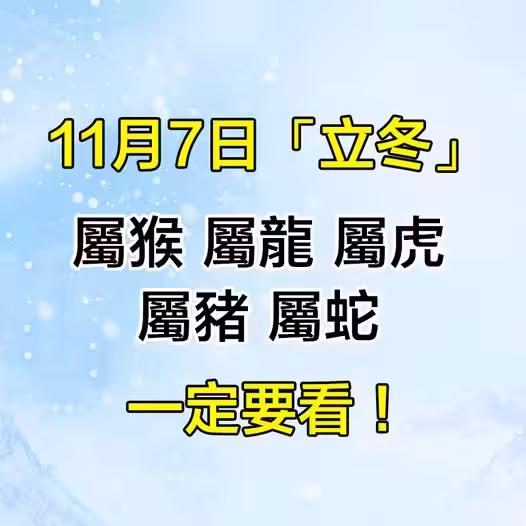 11月7日「立冬」「屬猴 屬龍 屬虎 屬豬 屬蛇」一定要看!