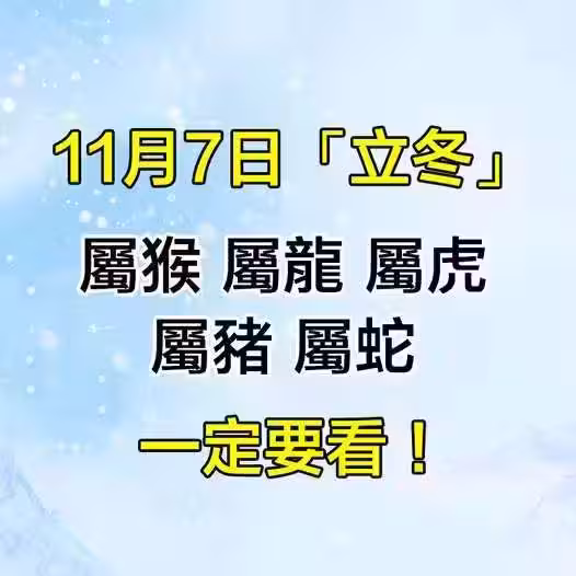 11月7日「立冬」「屬猴 屬龍 屬虎 屬豬 屬蛇」一定要看