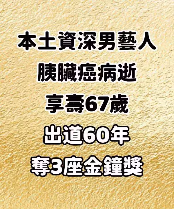 本土資深男藝人,胰臟癌病逝享壽67歲,出道60年奪過3座金鐘獎…