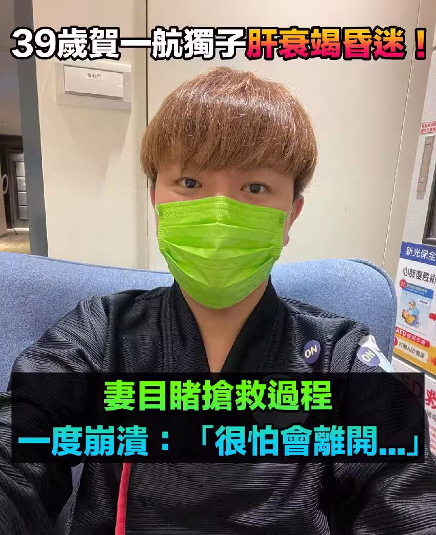 39歲賀一航獨子「肝衰竭昏迷…」緊急送醫搶救,妻目睹全過程崩潰:「很怕會離開」