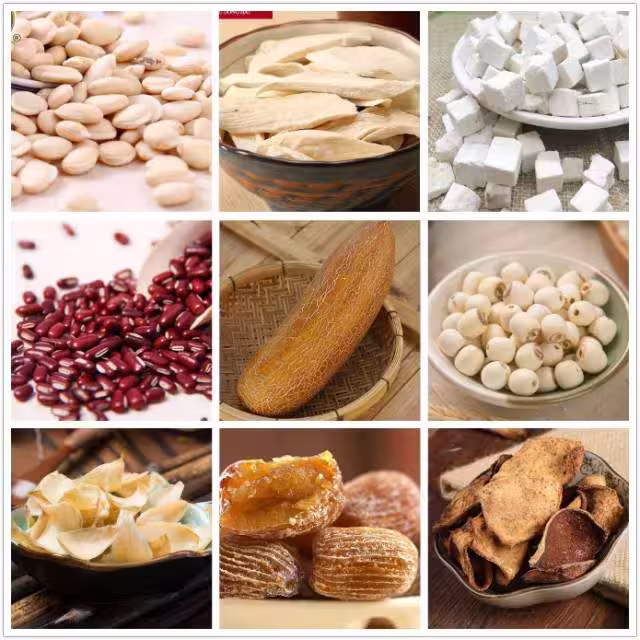 老黃瓜去濕湯 老黃瓜,1個。 赤小豆,1兩。 扁豆,1兩。 淮山,1兩。 蜜棗,3個。 陳皮,1片。 蓮子、百合、茯苓,少量。 功效:祛濕氣。