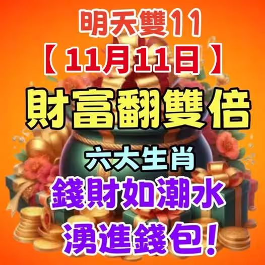 明天雙11【11月11日】財富翻雙倍,六大生肖錢財如潮水湧進錢包