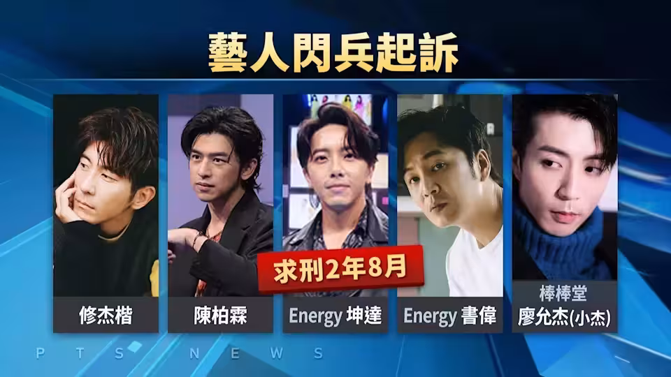 修杰楷、坤達涉逃兵案偵結 5藝人遭求刑2年8月