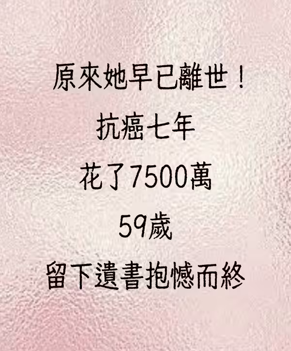 原來她早已離世!抗癌七年就花了7500萬,59歲留下遺書抱憾而終
