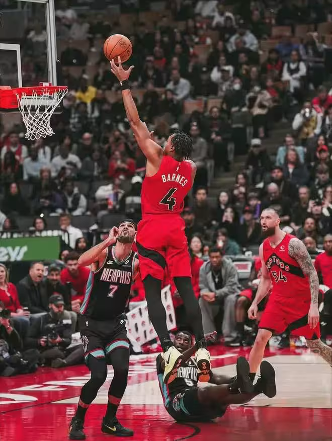 巴恩斯的三項命中率均是生涯新高,尤其是三分投射,有了明顯進步。上賽季他的三分命中率只有27.1%,生涯三分命中率30.5%,本賽季提升至38.9%。巴恩斯的合同5年2.24億美元,本賽季薪水3866萬美元,2030年夏天到期。