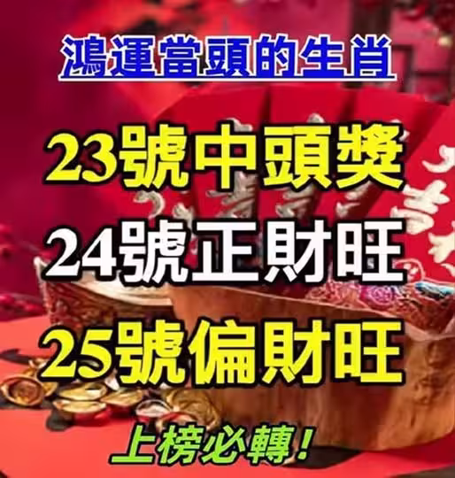 以下是2025年11月23日至25日期間鴻運當頭的生肖,他們將在這幾天迎來好運與財富運勢的高峰: