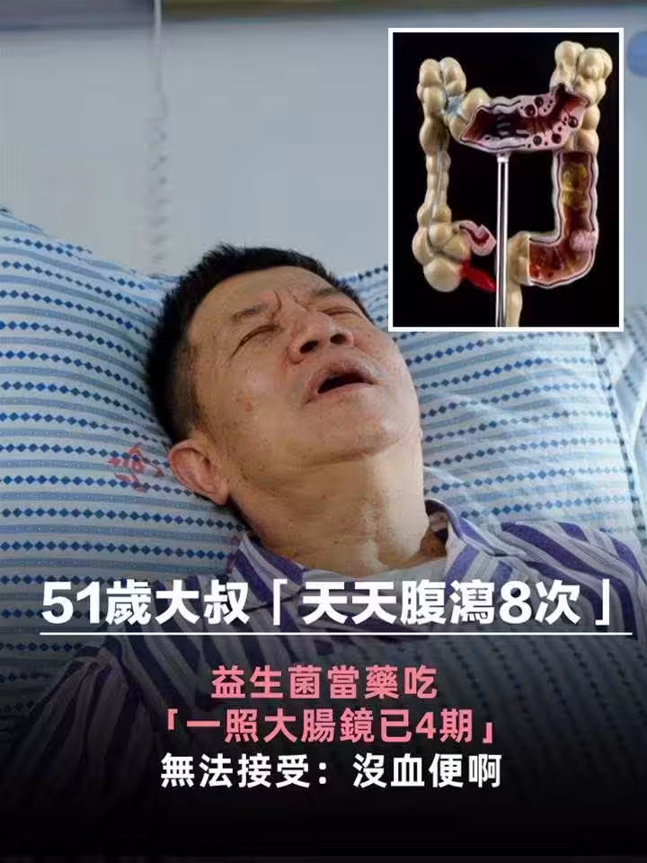 50歲大叔「天天腹瀉8次」以為腸躁症「一照大腸鏡已4期」益生菌當藥吃,無法接受: 沒血便啊!!