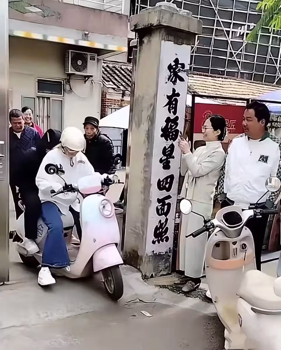 全紅嬋的妹妹穿了一件寬鬆的白色衛衣、牛仔褲,她染了金黃色的頭髮、看起來洋氣了許多。因為有太多人圍觀,妹妹戴著頭盔、低著頭,並不想回應,她看起來有點害羞。