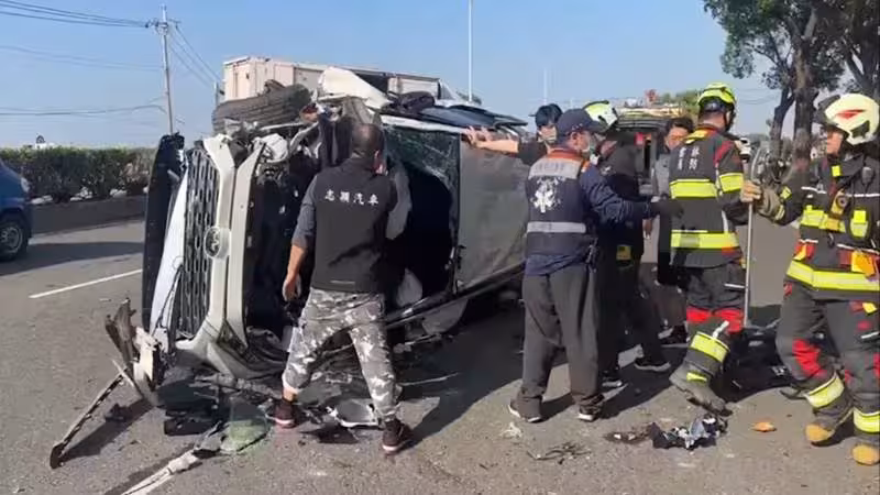 雲林虎尾下午2點左右發生嚴重交通事故,42歲鄭姓男子開車載著太太和一對子女,一家四口外出購物,行經台一線往莿桐方向時,突然偏離車道失控自撞路樹。車子翻覆3圈半,側翻在路中,路過民眾先將4歲和5歲小孩抱出,消防隊員破壞車體救出受困的夫妻,其中39歲太太頭部嚴重撕裂傷,一度昏迷,送醫急救後已經恢復意識。