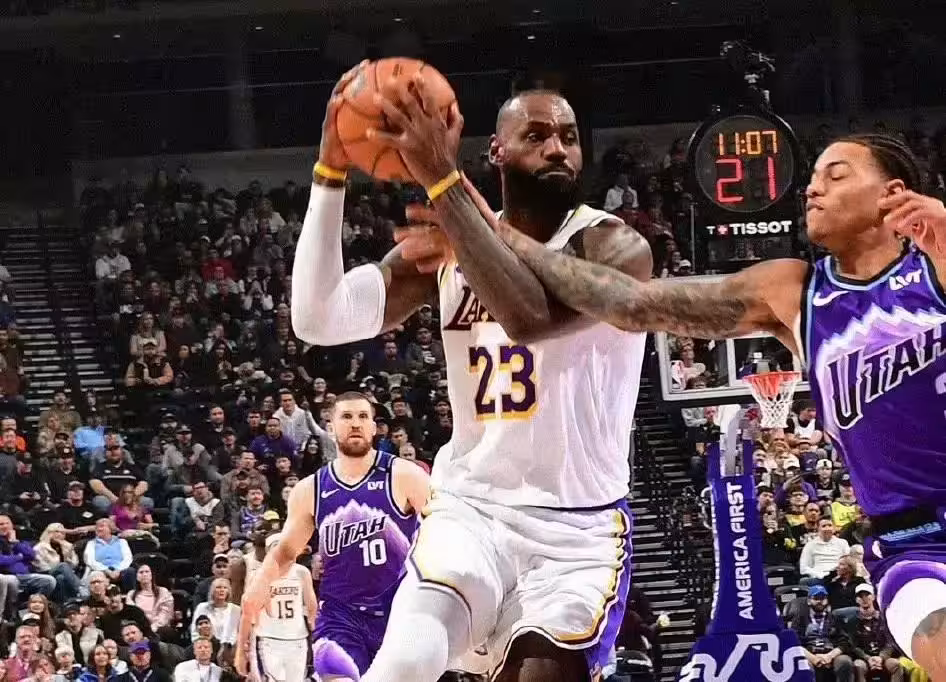 次節比賽開始,馬卡籃下高舉高打,轉身上籃得分,幫助爵士先下一城,艾頓空中接力震盪灌籃予以還擊,森薩博空位三分發炮一擊命中,里夫斯的側翼超遠三分自信出手,長虹貫日,直墜籃心,拉拉維亞埋伏底角,大號三分出手同樣也進,貝利的漂移三分開火回應一球,兩邊展開對飆三分大戰,互不相讓,效率都還不錯。老詹開局手感有些慢熱,但很快就把狀態調整過來,連續幾次的下快攻,絲毫不見歲月侵蝕的痕跡,速度飛快,第二節老詹也是貢獻出8分4籃板5助攻的全面數據,湖人微微占據主動權,半場比賽戰罷,湖人62-55領先爵士7分。