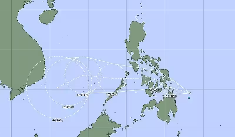 菲律賓東南方的熱帶擾動預計24日至25日通過菲律賓進入南海,不排除發展為第27號颱風天琴(koto)。