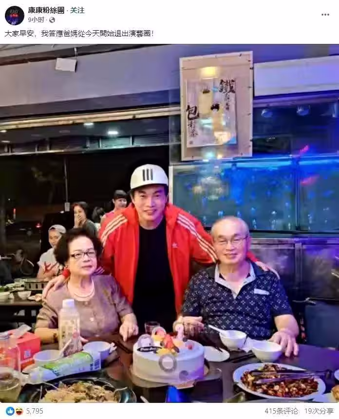 4月1日康康在社交平台發布了一則令人震驚的消息:「大家早安,我答應爸媽從今天開始退出演藝圈」