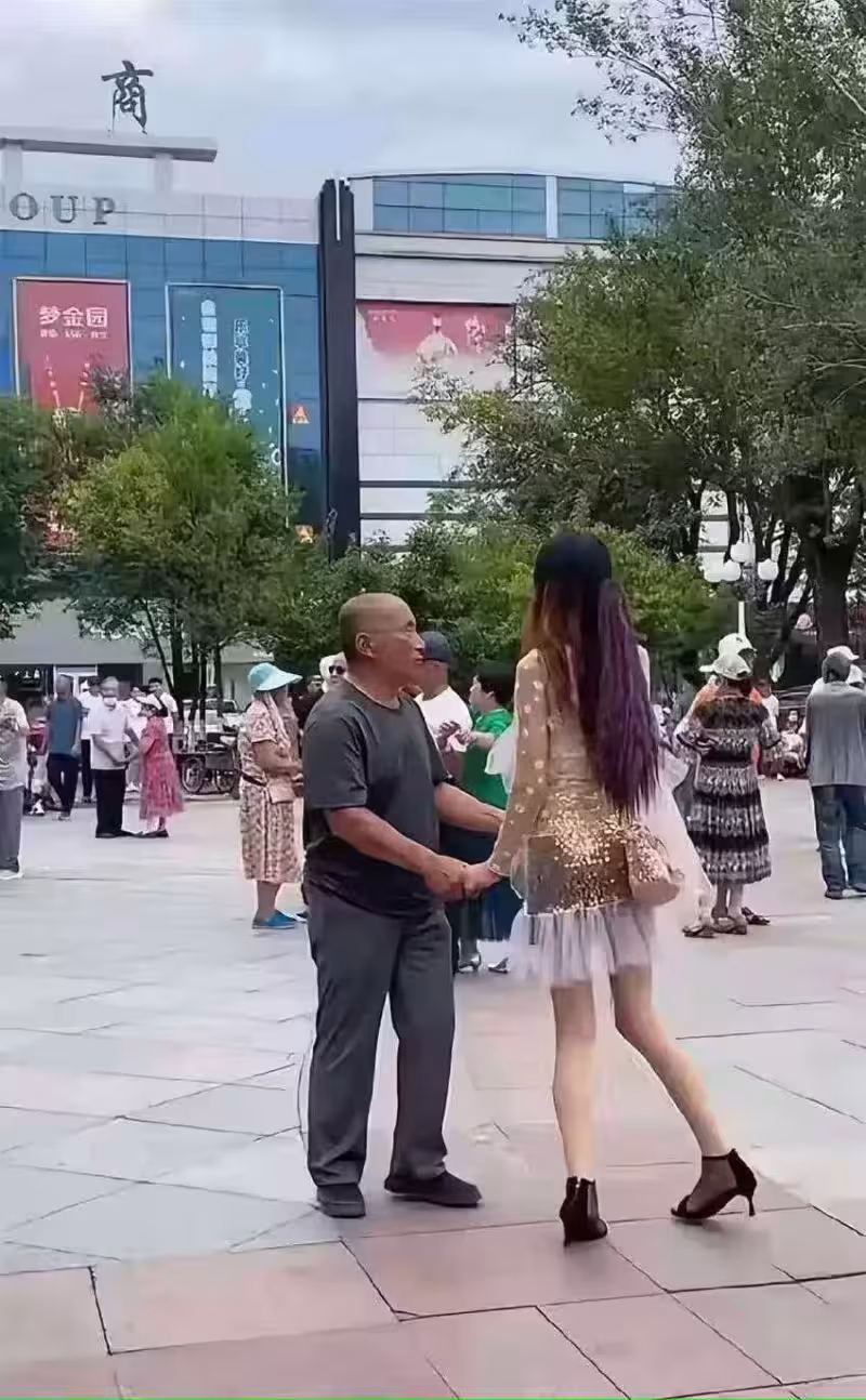 大爺和「靚女」廣場跳舞引注目!飄逸秀髪逆天長腿卻「毀在一個回眸上」,網驚:背影殺手,秒變正面「兇手」!